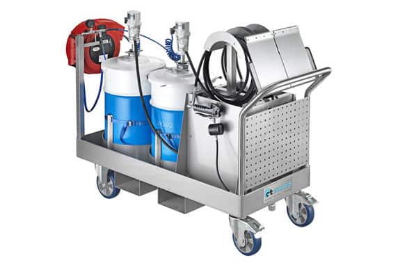 Cromatech liefert mobile Fett-Befüllsysteme, die das Nachfüllen beim Service im Depot beträchtlich erleichtern und die Sicherheitsanforderungen erfüllen.