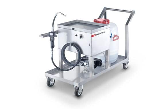 Das mobile Spurkranzfett-Befüllsystem ist eine fahrbare und sofort betriebsbereite Anlage für den mobilen Einsatz und autarken Betrieb.